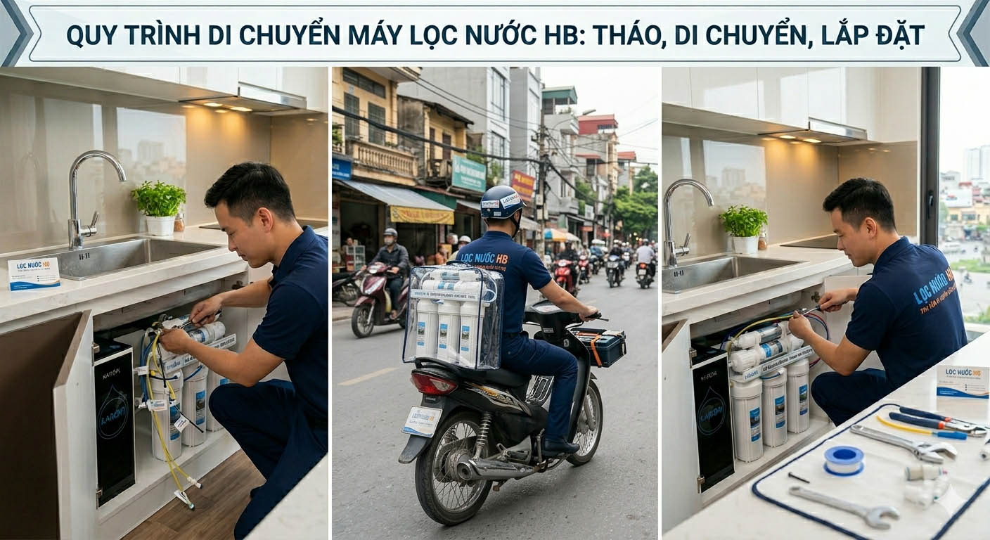 Để đảm bảo máy hoạt động ổn định như mới sau khi di chuyển, Lọc Nước HB áp dụng quy trình 6 bước chuẩn kỹ thuật: