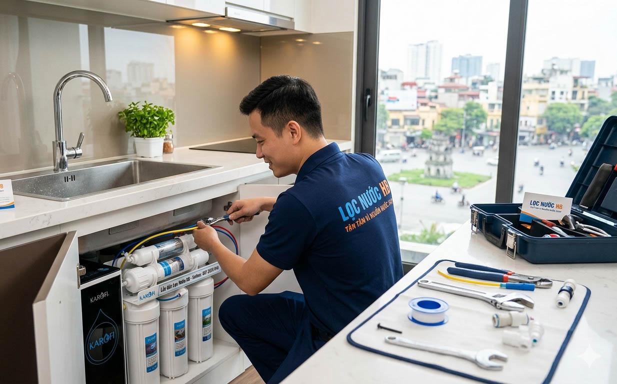 Dịch vụ: Tháo lắp, sửa chữa, thay lõi lọc nước tận nhà 24/7. Lọc Nước HB – Tận tâm vì nguồn nước sạch của mọi nhà!