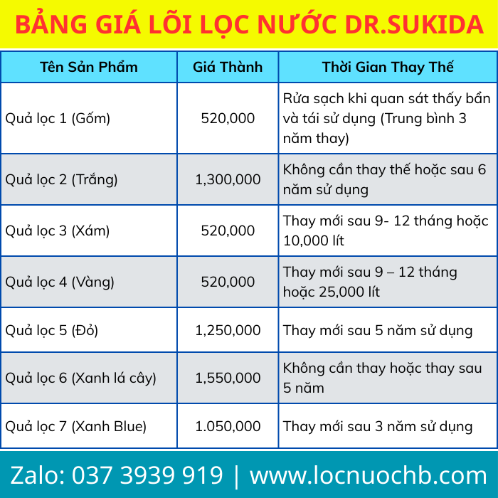 Bảng Giá Thay Thế Lõi Lọc Nước Nano Dr. Sukida Chính Hãng 2025