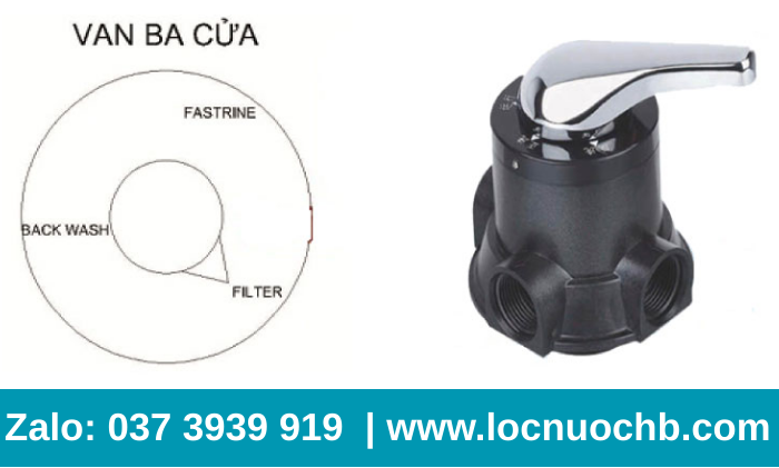Van cơ 3 cửa thường được lắp cho cột lọc cát, mangan, than hoạt tính dùng để sục rửa ngược và xả.
