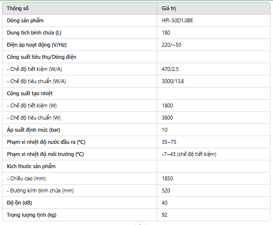 Với những đặc điểm trên, máy nước nóng bơm nhiệt A. O. Smith HPI-50D1.0BE là lựa chọn lý tưởng cho những ai tìm kiếm giải pháp nước nóng hiệu quả, an toàn và thân thiện với môi trường.