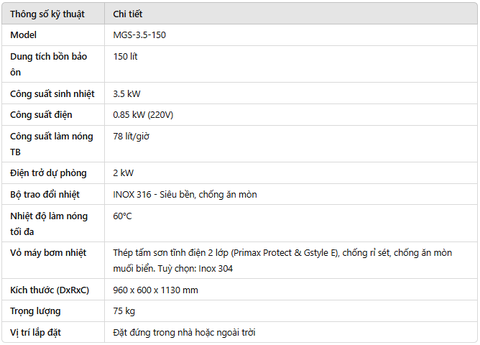 » Với dung tích 150 lít, sản phẩm hoàn toàn đáp ứng đủ nhu cầu nước nóng sinh hoạt cho gia đình 3-4 người. Kích thước nhỏ gọn, dễ lắp đặt linh hoạt trong nhà hoặc ngoài trời mà không chiếm nhiều diện tích.