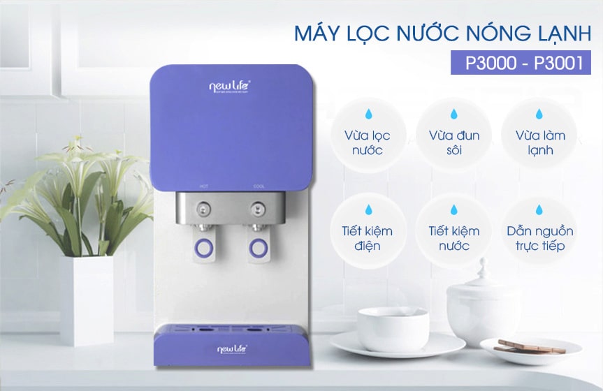 Máy lọc nước nước nóng lạnh New Life P3001 vừa có khả năng lọc sạch nước liên tục 40l/h, vừa có chức năng làm nóng, làm lạnh theo yêu cầu của người tiêu dùng.