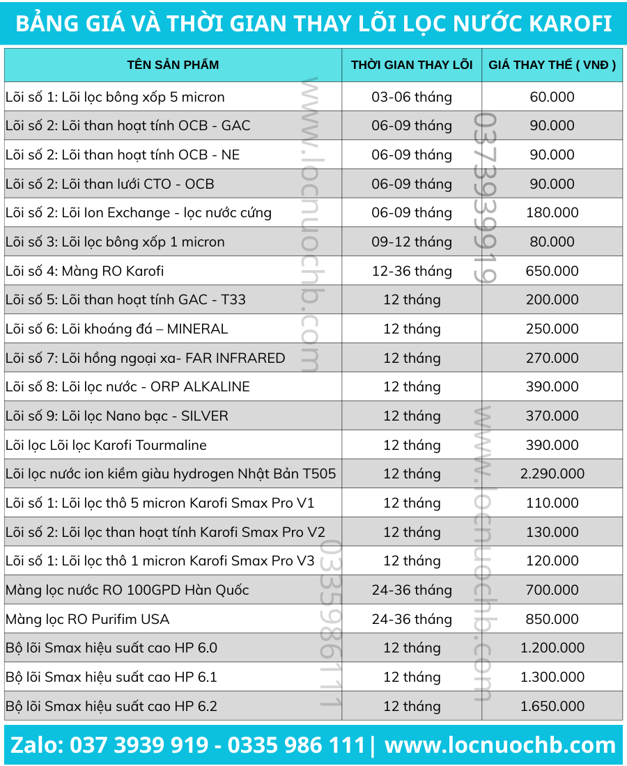 Bảng giá và thời gian thay lõi máy lọc nước Karofi tại nhà
