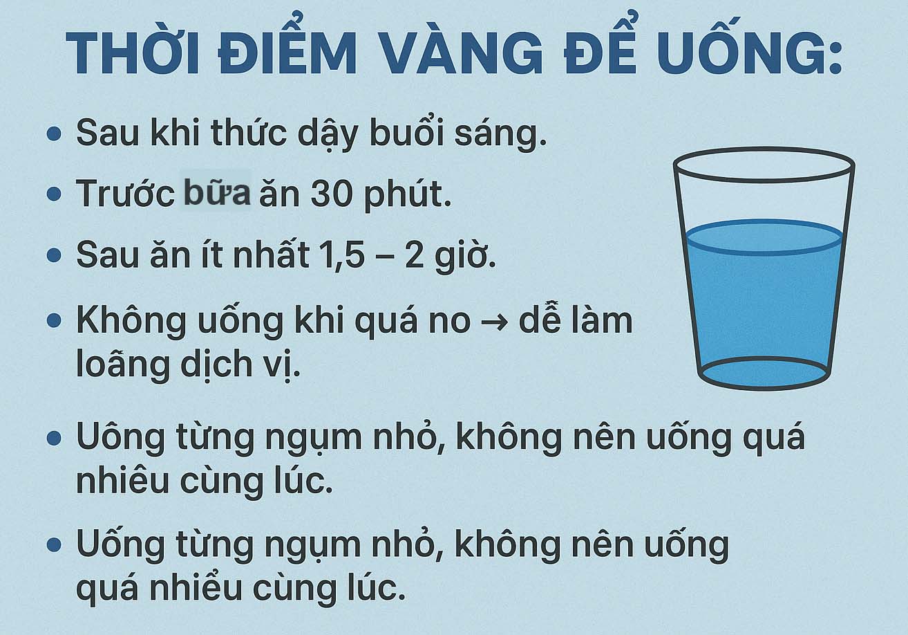 - Không uống khi quá no → dễ làm loãng dịch vị.