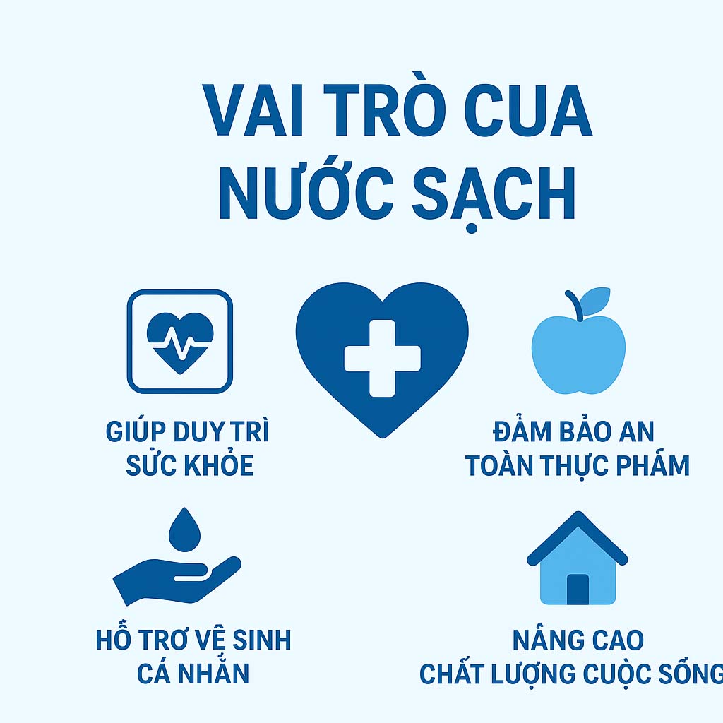 Nước sạch có vai trò vô cùng quan trọng đối với sức khỏe con người, vệ sinh môi trường và phát triển kinh tế. Dưới đây là những lợi ích thiết yếu mà nước sạch mang lại: